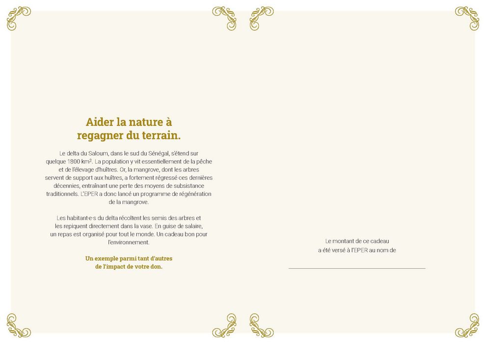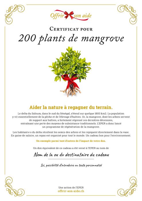Le delta du Saloum, dans le sud du Sénégal, s’étend sur quelque 1800 km2. La population y vit essentiellement de la pêche et de l’élevage d’huîtres. Or, la mangrove, dont les arbres servent de support aux huîtres, a fortement régressé ces dernières décennies, entraînant une perte des moyens de subsistance traditionnels. L’EPER a donc lancé un programme de régénération de la mangrove.
