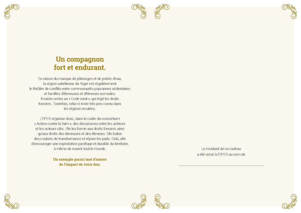 L’EPER organise donc, dans le cadre du consortium « Action contre la faim », des discussions entre les actrices et les acteurs clés. Elle les forme aux droits fonciers ainsi qu’aux droits des éleveuses et des éleveurs. Elle balise des couloirs de transhumance et répare les puits. Cela, afin d’encourager une exploitation pacifique et durable du territoire, à même de nourrir tout le monde.
