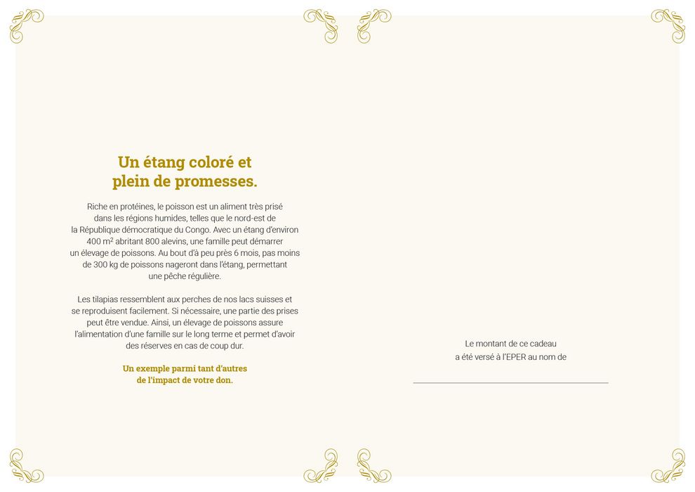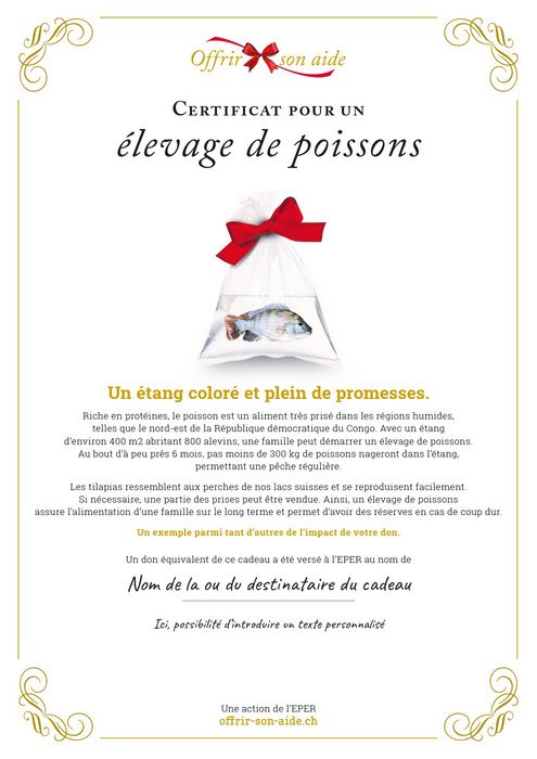 Les tilapias ressemblent aux perches de nos lacs suisses et se reproduisent facilement. Si nécessaire, une partie des prises peut être vendue. Ainsi, un élevage de poissons assure l’alimentation d’une famille sur le long terme et permet d’avoir des réserves en cas de coup dur.
