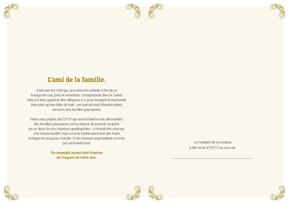 En fonction du cadeau choisi, votre don est reversé à l’un des cinq fonds de l’EPER, chacun ayant un but bien précis.