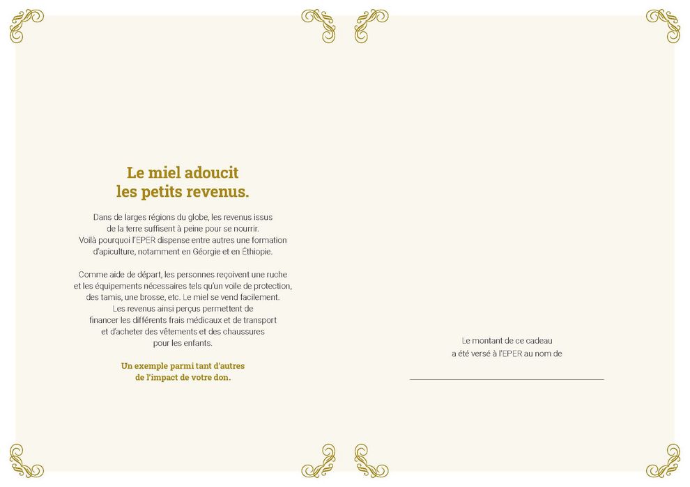 En fonction du cadeau choisi, votre don est reversé à l’un des cinq fonds de l’EPER, chacun ayant un but bien précis.