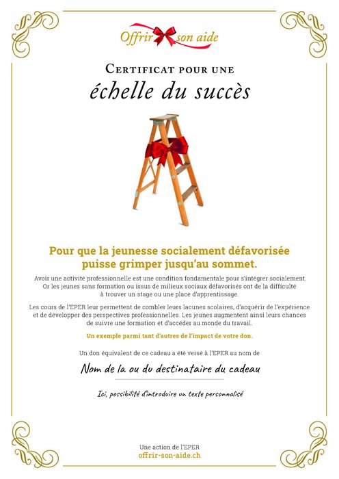 En fonction du cadeau choisi, votre don est reversé à l’un des cinq fonds de l’EPER, chacun ayant un but bien précis.