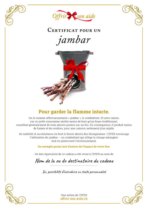 Sa mobilité et sa résistance en font le favori absolu des Sénégalaises. L’EPER encourage l’utilisation du jambar – un combattant qui allège la charge ménagère tout en préservant l’environnement.