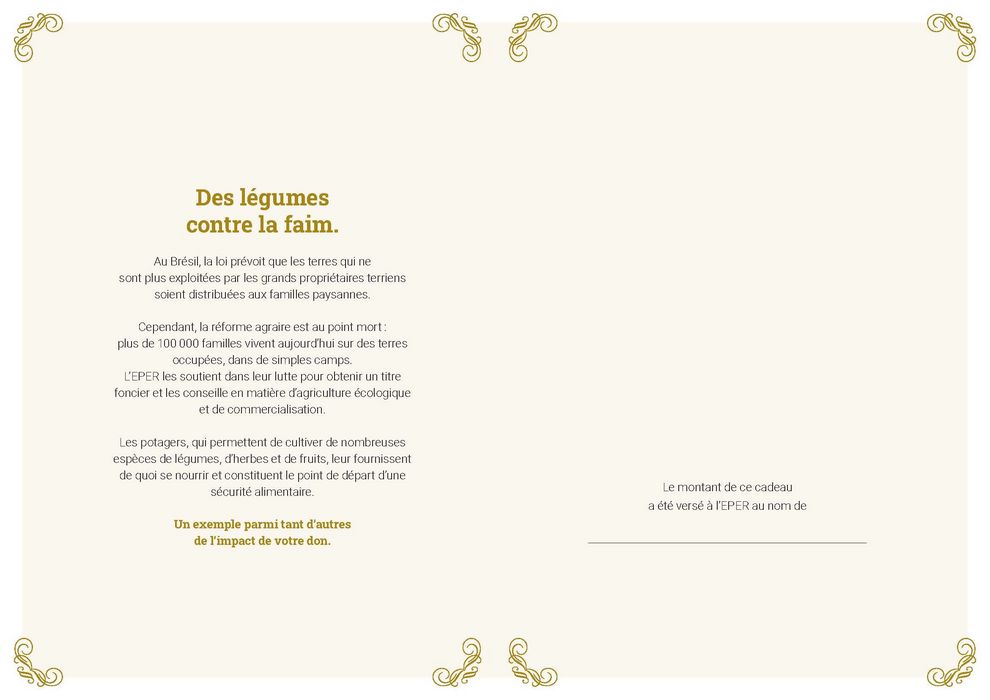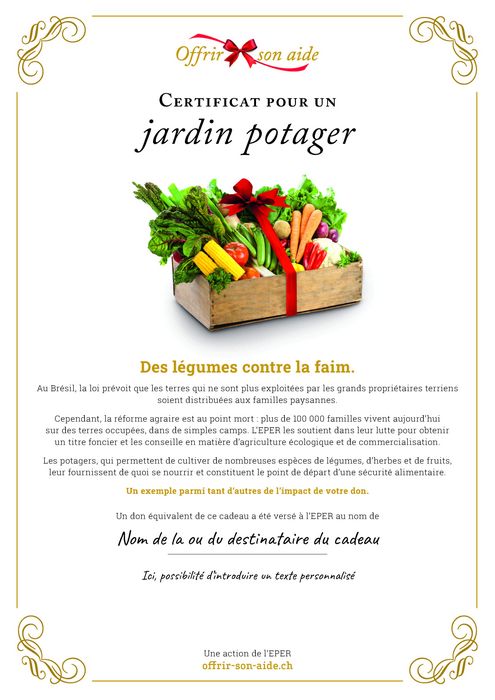 Au Brésil, la loi prévoit que les terres qui ne sont plus exploitées par les grands propriétaires terriens soient distribuées aux petits paysans. A ce jour, 500 000 familles ont obtenu une parcelle. Mais 150 000 autres familles vivent toujours sur des terres occupées, dans de simples camps. L’EPER les soutient dans leur lutte pour obtenir un titre foncier et les conseille en matière d’agriculture écologique et de commercialisation. Les potagers, qui permettent de cultiver de nombreuses espèces de légumes, d’herbes et de fruits, leur fournissent de quoi se nourrir et constituent le point de départ d’une sécurité alimentaire.