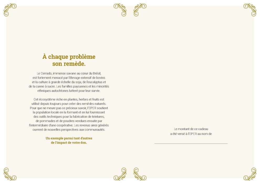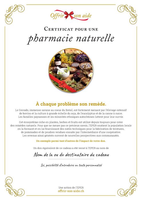 Le Cerrado, immense savane au coeur du Brésil, est fortement menacé par l’élevage extensif de bovins et la culture à grande échelle du soja, de l’eucalyptus et de la canne à sucre. Les familles de petits paysans et les minorités ethniques indigènes luttent pour leur survie. L’écosystème riche en plantes, herbes et fruits est utilisé depuis toujours pour créer des remèdes naturels. Pour que ne meure pas ce précieux savoir, l’EPER soutient la population locale en la formant et en lui fournissant des outils techniques servant à la fabrication de teintures, de pommades et de poudres vendues ensuite par l’intermédiaire d’une coopérative. Les revenus ainsi générés ouvrent de nouvelles perspectives aux communautés.