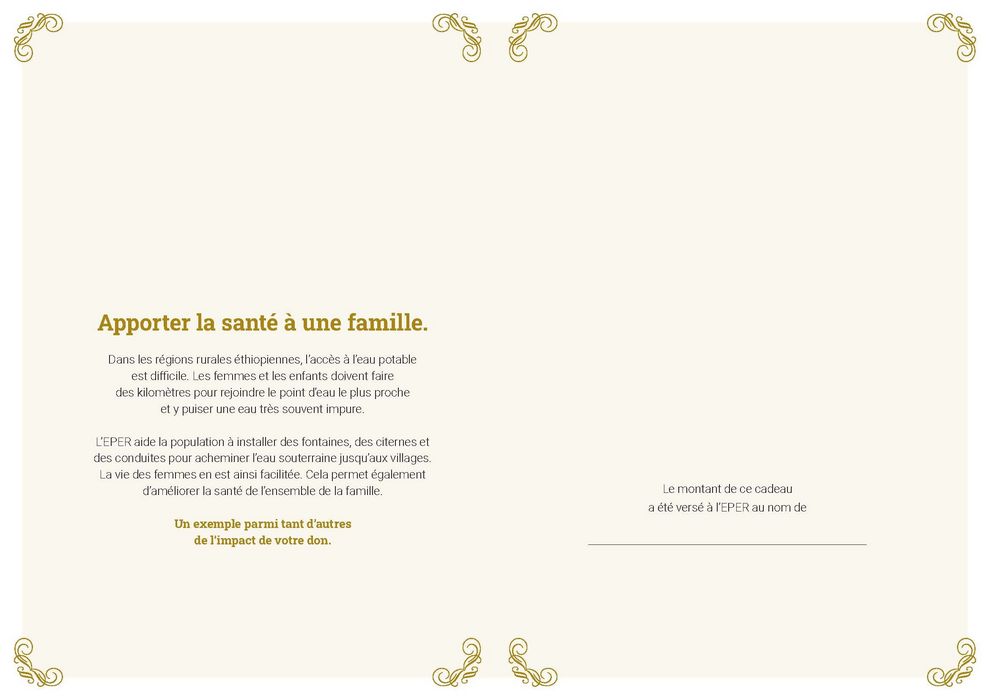 En fonction du cadeau choisi, votre don est reversé à l’un des cinq fonds de l’EPER, chacun ayant un but bien précis.