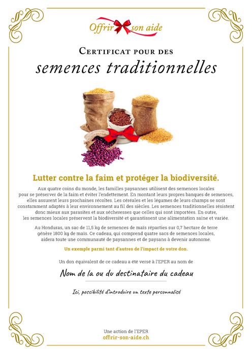 Aux quatre coins du monde, les familles de paysans utilisent des semences locales pour se préserver de la faim et éviter l’endettement. En montant leurs propres banques de semences, elles assurent leurs prochaines récoltes. Les céréales et les légumes de leurs champs se sont constamment adaptés à leur environnement au fil des siècles. Les semences résistent donc mieux aux parasites et aux sécheresses que celles qui sont importées. En outre, les semences locales préservent la biodiversité et garantissent une alimentation saine et variée.